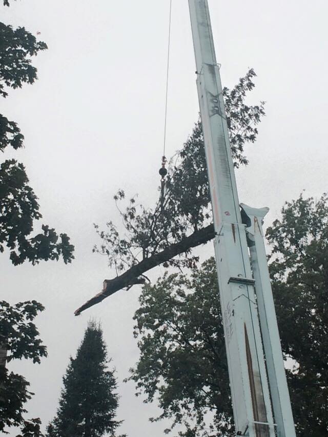 Tree removals in most urban and suburban environments present a challenge. Trees in neighborhoods usually are surrounded by other valuable buildings or plant life. Tree removals, specifically large trees, require careful pieceing out and lowering done by licensed/insured arborists. We operate state-of-the-art machinery to guarantee your safety and the protection of your home and property. The use of arborist specialized equipment while removing trees is determined by the conditions on your landscape, branch arrangement, and the hardiness of your tree. A typical tree removal includes cutting down a tree, chipping all of the limbs, cutting all big wood into 20" logs, and cutting the stumps as close as possible to the ground. We haul away all of the brush, wood chips, and logs unless otherwise stated. If you desire logs for firewood or wood chips from your tree removal we can leave them for you free of charge (stacked logs and chips in a neat pile).