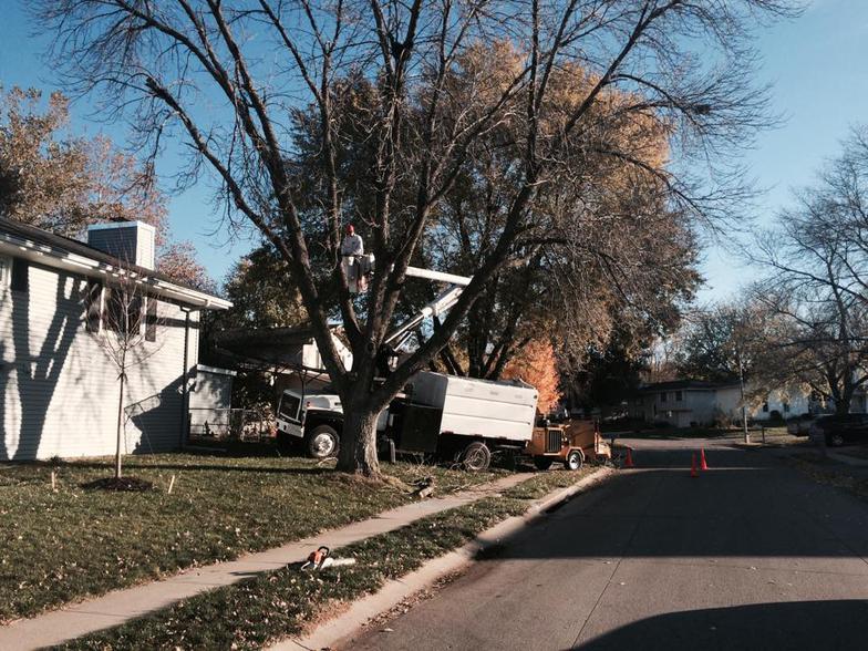 Tree Services of Omaha prepares work zones, such as laying plywood, to minimize the impact onto lawns from equipment and man power. However, some minor indents and patches may occur and cannot be prevented. The machinery that we have is heavy and both warm weather and rain contribute to the post tree work impact (winter work is another option to further lessen potential lawn damage, because the soil is frozen and hard). In most cases these lawn impressions are barely noticeable, but there are cases where the damage needs time to return to its original state. Unless clear misconduct and lack of preparation are determined, these minor damages are not Tree Services of Omaha's responsibility to repair.